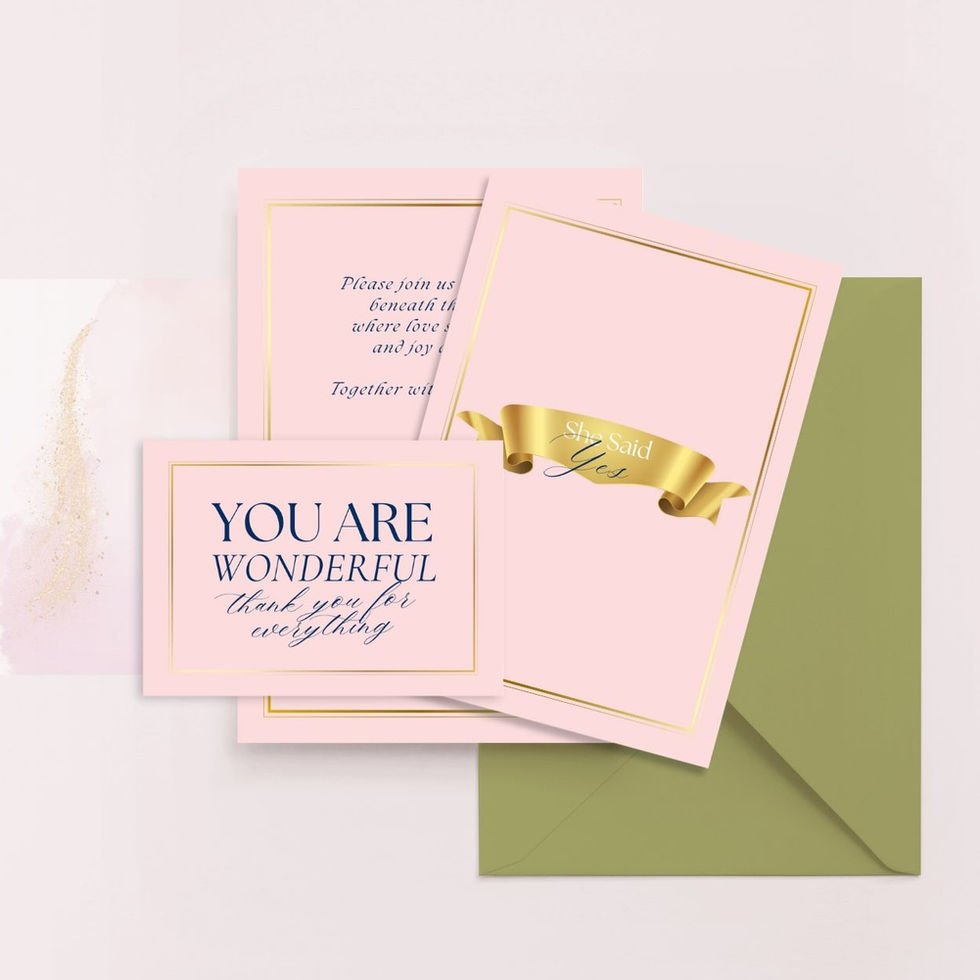 Set the tone for a romantic, elegant celebration with this beautifully designed wedding invitation suite, featuring delicate blush tones, navy script, and timeless gold detailing.